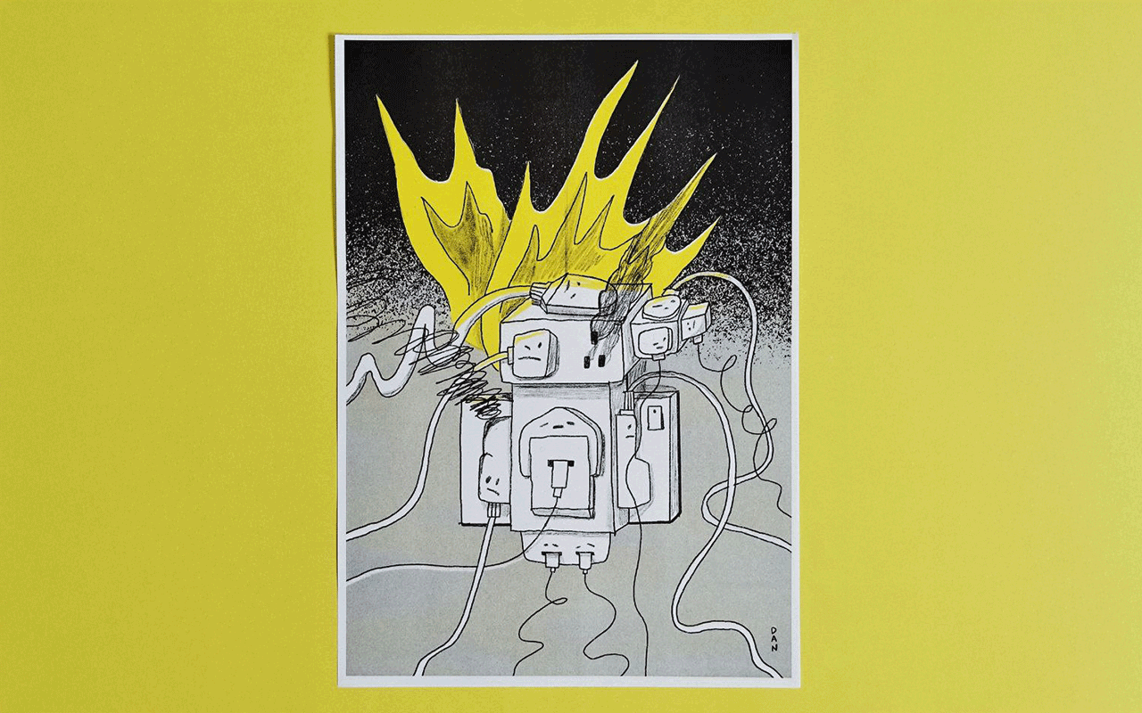 You know that feeling when you’re just taking on too much... let this be a reminder to unfrazzle your wires and unplug some stuff before you short circuit!